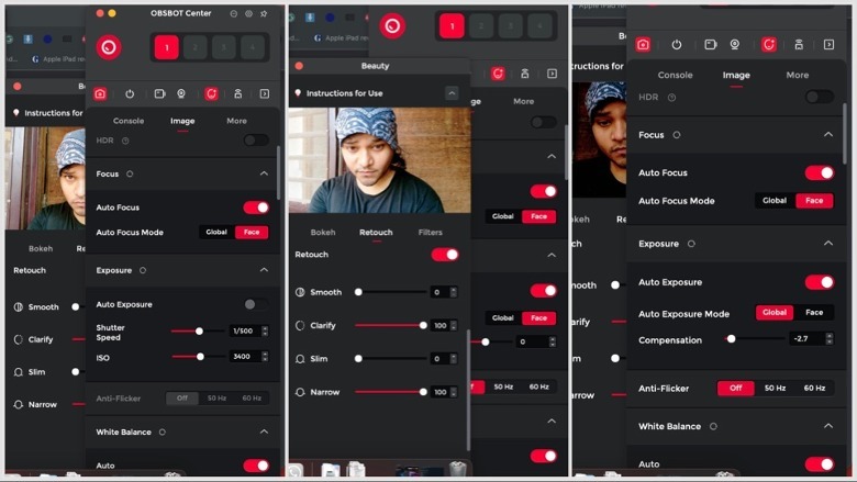 Technically, it’s a milestone in innovation in its own league, but to put it simply, it opens the doors for more accurate and quicker focus adjustment. Up front in the OBSBOT Center app is the Console, where you find toggles for the AI-assisted auto-framing tech. You can specify it to focus on your face, or the entire upper torso. Of course, users can disable it, and use the directional gimbal for more precise frame adjustment.